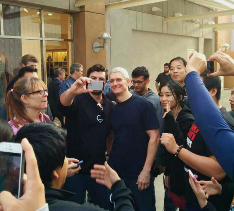 Tang li, a student at UC Berkeley waited at the Apple store at 3 a.m. for the new product. When Cook participated in the local store's team meeting before doors opened at 8 a.m., he got a chance to meet him and took picture with him. He said that "I got so excited that I saw him I just jumped to the front of the line to take pictures with him."