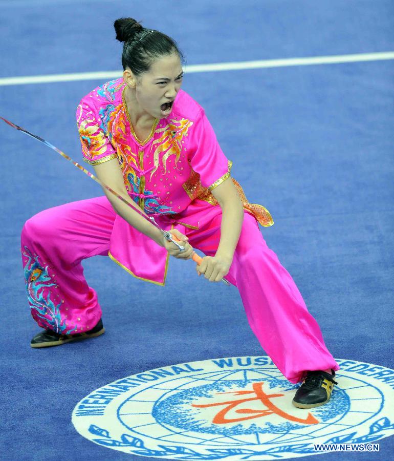 Wei Hong of China performs during the nandao competition of women's nanquan\nandao all-round Wushu event at the 17th Asian Games in Incheon, South Korea, Sept. 20, 2014. Wei Hong got the bronze medal with 19.15 points. (Xinhua/Gong Lei) |
