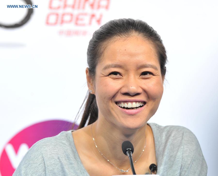 Chinese famous tennis player Li Na reacts during her retirement press conference in Beijing, capital of China, Sept. 21, 2014. China's first and only Grand Slam winner Li Na formally announced her retirement on Sept. 19, leaving Chinese tennis yearning for the next superstar. (Xinhua/Li Wen)