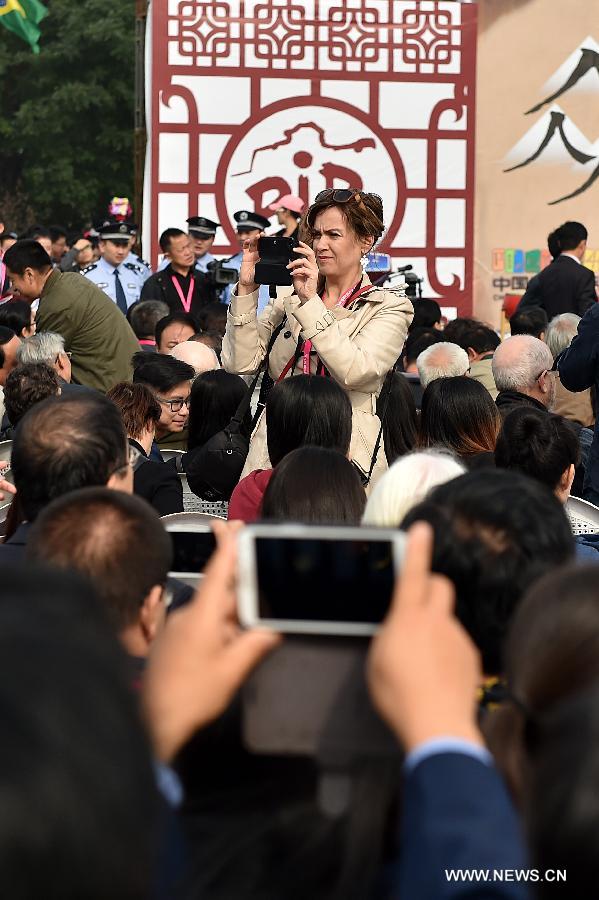 A foreigner takes photos with a mobile phone at the opening ceremony of Pingyao International Photography Festival in Pingyao County, north China's Shanxi Province, Sept. 19, 2014. With the popularization of mobile phone cameras, mobile phone photography plays an important role in daily life. (Xinhua/Zhan Yan) |