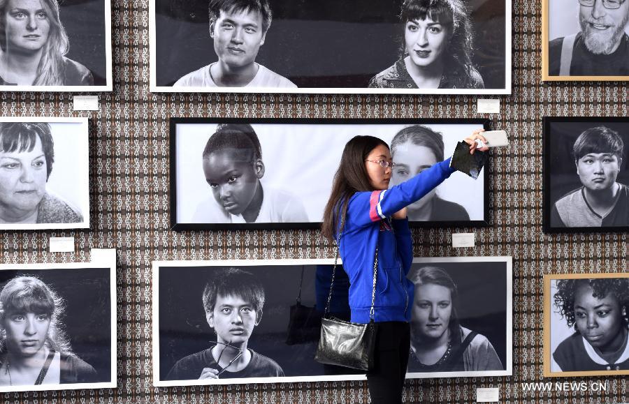 A tourist takes photos of herself with a mobile phone during the Pingyao International Photography Festival in Pingyao County, north China's Shanxi Province, Sept. 21, 2014. With the popularization of mobile phone cameras, mobile phone photography plays an important role in daily life. (Xinhua/Yan Yan) |