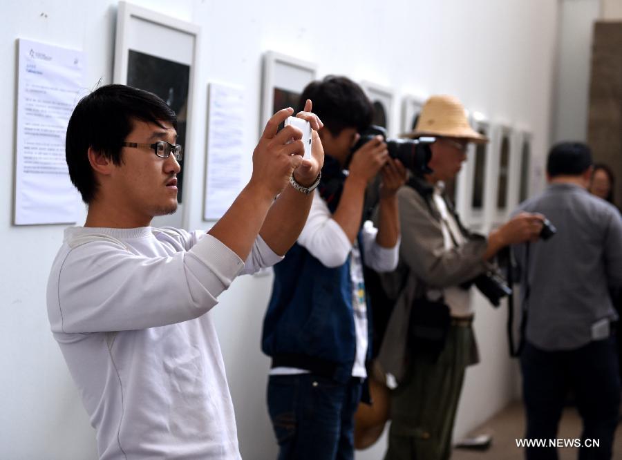 A tourist takes pictures with a mobile phone during the Pingyao International Photography Festival in Pingyao County, north China's Shanxi Province, Sept. 20, 2014. With the popularization of mobile phone cameras, mobile phone photography plays an important role in daily life. (Xinhua/Yan Yan) |