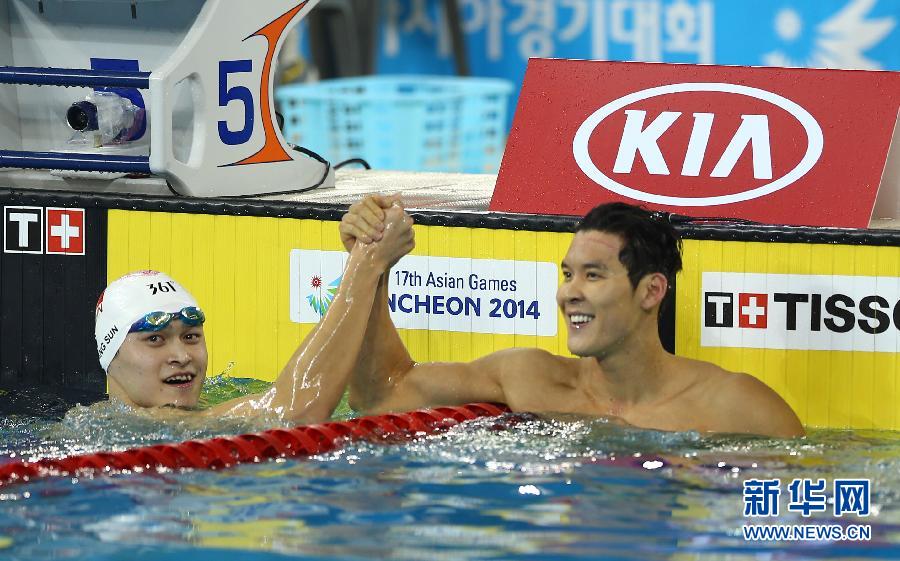Japanese swimmer Kosuke Hagino stole the spotlight from superstars Sun Yang and Park Tae-hwan when he outclassed the Olympic champion duo to win the men's 200m freestyle final at the Asian Games here on Sunday. (Xinhua photo)