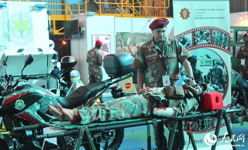 Department of Defence of South Africa specially sets its exhibition hall at the Expo, in which several groups display weaponry and armament at their booths.(People's Daily Online/ Zhang Jiexian)