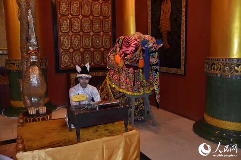A woman welcomes tourists in Karaweik Palace. (People's Daily Online/ Alvaro Lago Sanchez)