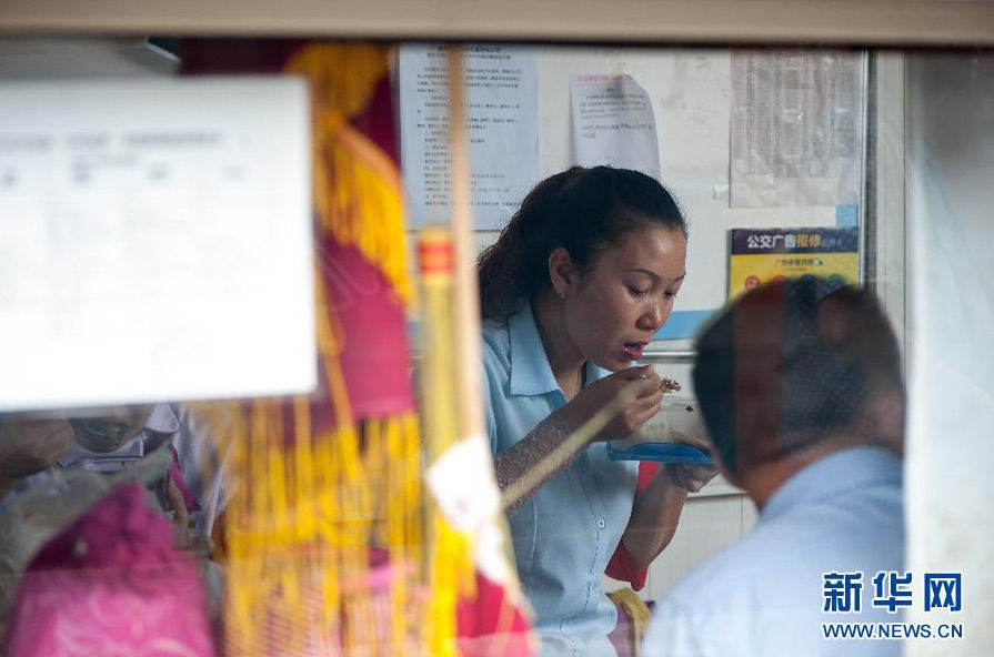 Li Mei has lunch with her colleagues. (Photo/Xinhua)