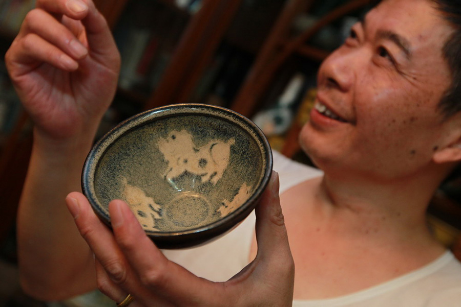 Hu Ping has already collected more than 20,000 porcelain wares, including monochrome-glazed wares, green-glazed wares and colored-glazed wares from the Spring and Autumn Period to Qing Dynasty. The rich and amazing collections of Hu have made his home an antique warehouse. All kinds of porcelain wares are piled against the wall and half of the dining-table is occupied by those wares.