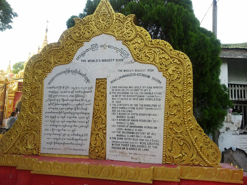 A big board stands outside the pagodas area, inscribed with letters "THE WORLD'S BIGGEST BOOK". (People's Daily Online/Du Mingming)