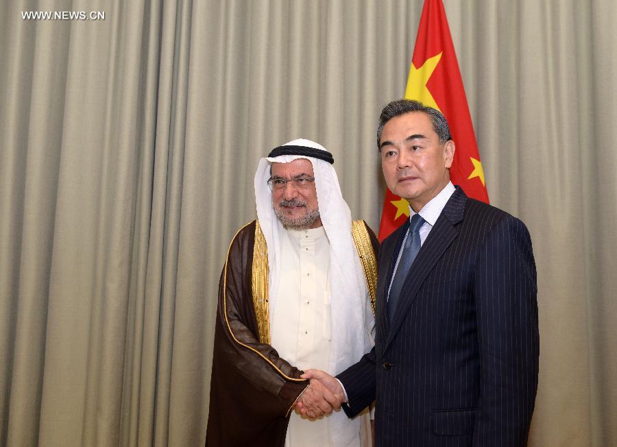 Chinese Foreign Minister Wang Yi (R) meets with Secretary General of the Organization of Islamic Cooperation Iyad Ameen Madani at the UN headquarters in New York, on Sept. 25, 2014. (Xinhua/Yin Bogu)
