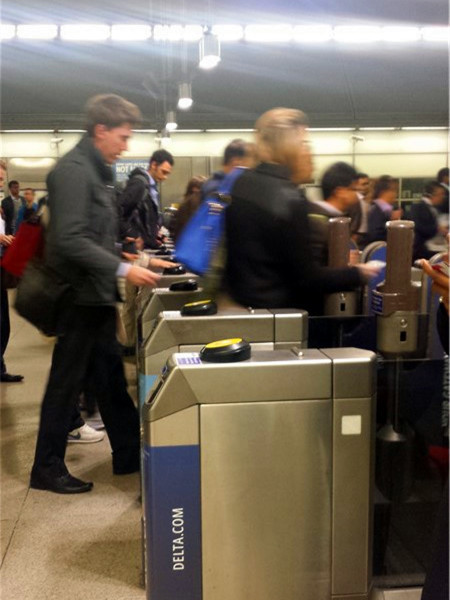 Londoners are passing through the gate. (Photo Bai Tianxing)