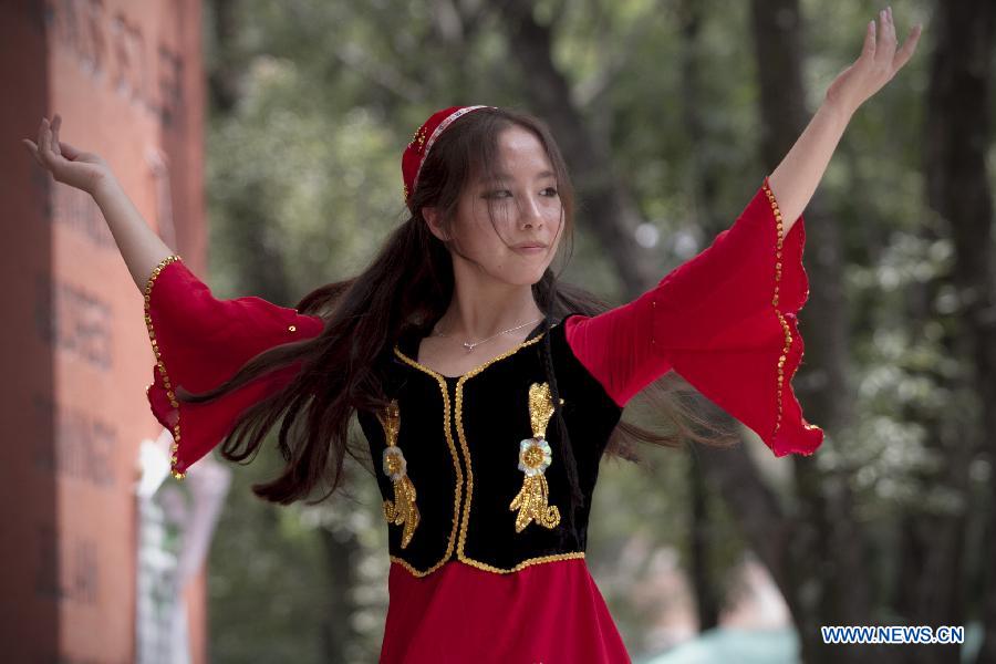 A dancer performs during the 2014 Chinese Cultural Autumn Festival, in the framework of the Day of the Confucius Institute, in Mexico City, capital of Mexico, on Sept. 27, 2014. The Day of the Confucius Institute is celebrated worldwide on Sept. 27. (Xinhua/Alejandro Ayala) |