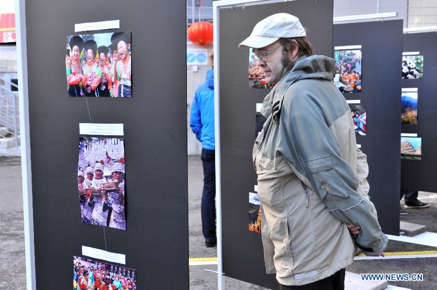 Estonian people enjoy Chinese photo exhibition in Talinn, Estonia, on Sept. 27, 2014. Various Chinese cultural activities marking the first Confucius Institute Day or 10th anniversary of the institute's establishment held at campus at Tallinn University in Tallinn, captital of Estonia on Saturday. (Xinhua/Viktor Vesterinen) |