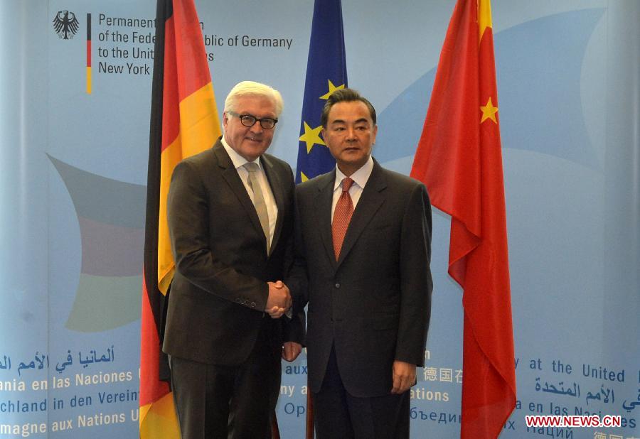 UNITED NATIONS, Sept. 27 -- Chinese Foreign Minister Wang Yi on Saturday met with his German counterpart Frank-Walter Steinmeier, and the two sides agreed to make continued efforts to secure the steady development of bilateral relations.