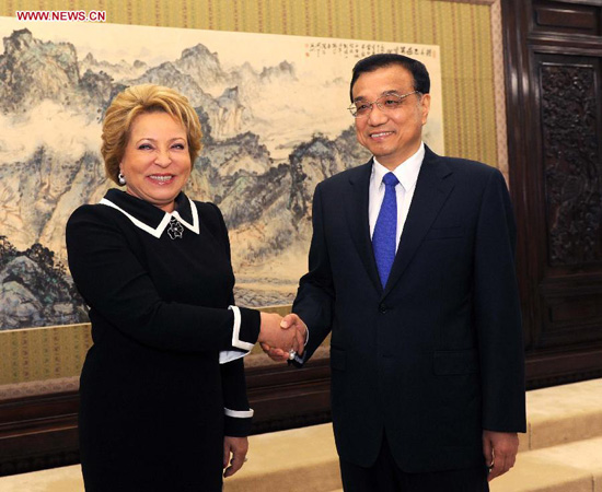 Chinese President Xi Jinping and Premier Li Keqiang have met with the visiting head of Russia's upper house of parliament, Valentina Matviyenko, in Beijing.