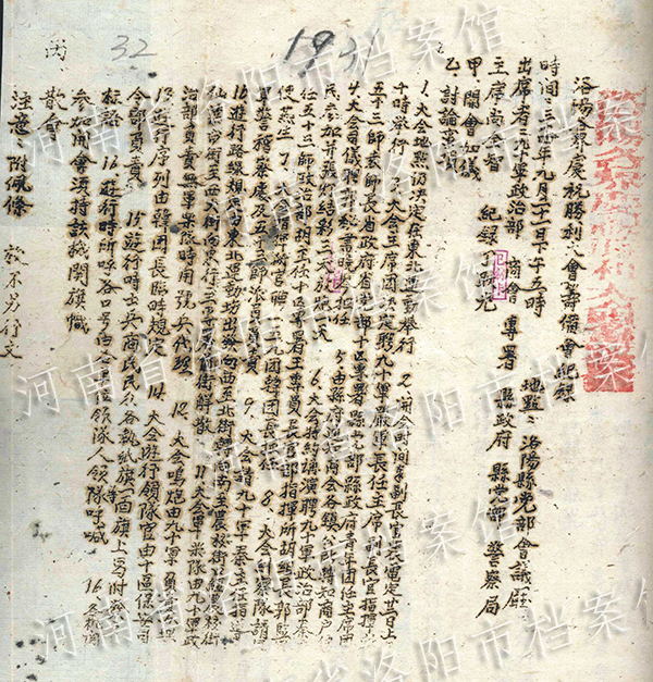 Minutes of the meetings held by the preparatory committee of the Victory over Japan Ceremony (Photo/Luoyang Municipal Archives) |