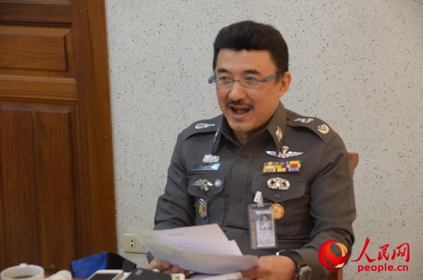 Mr. Pittaya Siriraksa, Deputy Commissioner of a Special Branch of the Royal Thai Police, sings a song in Chinese. (People's Daily Online/Wang Tianle)