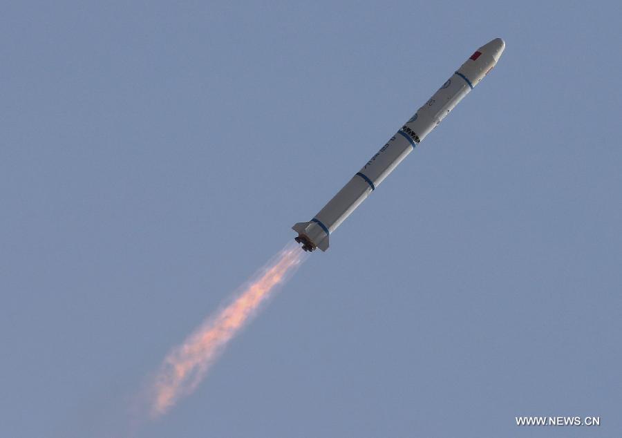 A Long March-2C carrier rocket carrying the Shijian-11-07 experimental satellite flies into the sky at the Jiuquan Satellite Launch Center in Jiuquan, northwest China's Gansu Province, Sept. 28, 2014. The satellite, which was developed by China Spacesat Co. Ltd under the China Aerospace Science and Technology Corporation, will be used to conduct scientific experiments in space. This was the 194th flight of the Long March rocket series. (Xinhua/Yang Shiyao)