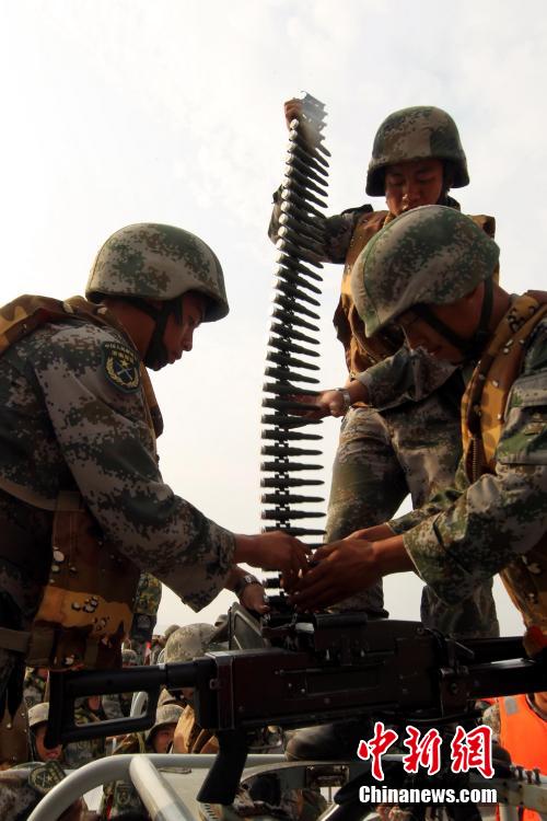 Nearly 6,000 troops of over 20 units from PLA Navy North Sea Fleet and Jinan Military Area Command conduct the "Joint-2014B" military drill in Bohai Bay from Sept. 25 to Sept. 27, 2014. (Chinanews.com/Qiu Chengliang)