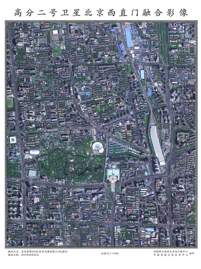 The fusion image captured by Gaofen-2 shows Beijing's Xizhimen transport hub. [Photo: sastind.gov.cn]