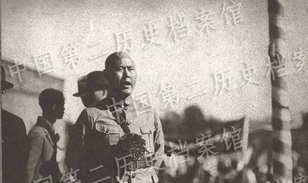 Fu Zuoyi, Commander-in-Chief of the 12th War Area, delivered a speech at the surrender ceremony of Japanese troops. (Photo/Second Historical Archives of China) |