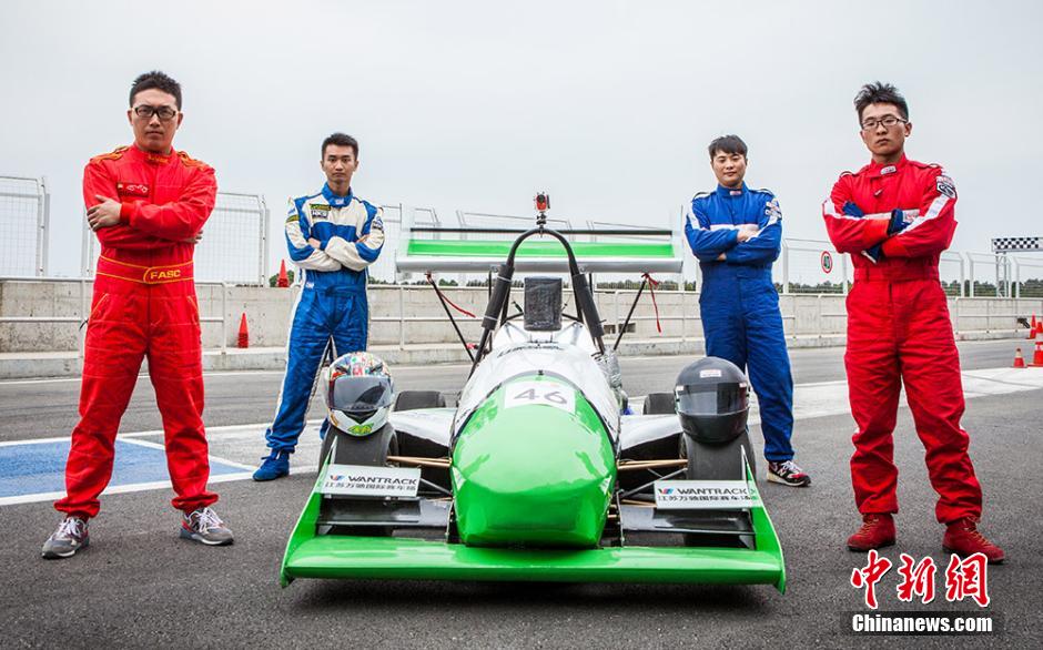 A new car named "Wantrack", which will participate in 2014 Formula Student China is shown to public at Nanjing Agricultural University, east China's Jiangsu province on Sept. 29, 2014. The posters of the new car were released at the same time. "Ningyuan Team" established in September 2010 at Nanjing Agricultural University has shown good performance for three consecutive years.