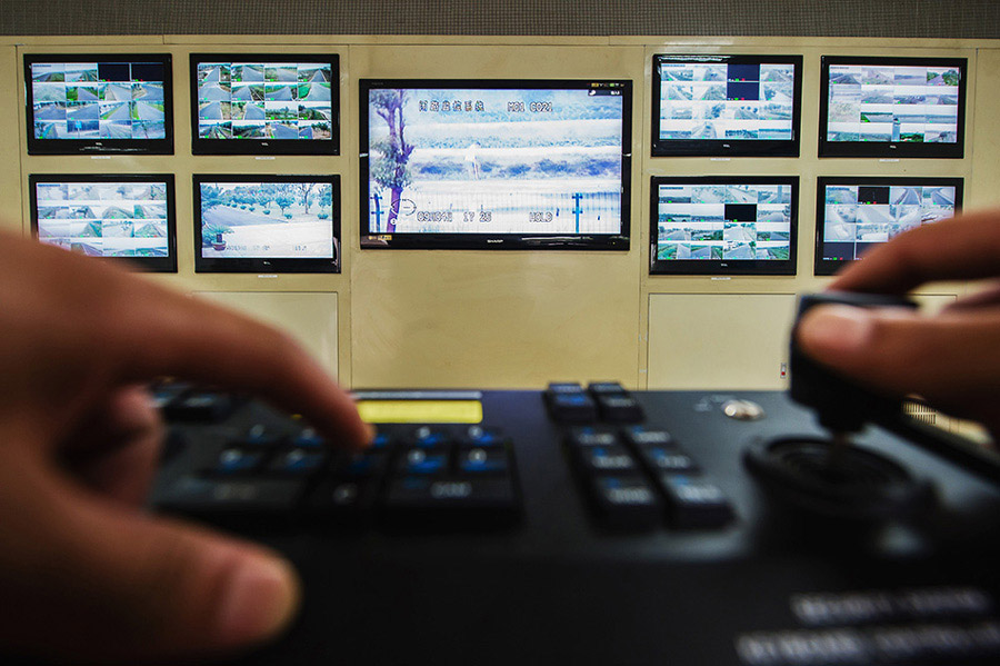 Staff demonstrate the real-time monitoring system within a fishery area in Kunshan, in East China's Jiangsu province. [Photo/Xinhua]