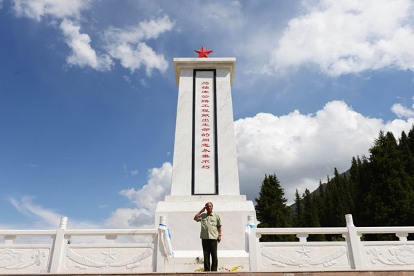 Chen salutes his fallen comrades at the cemetery. Photo by HENG GUOLIANG