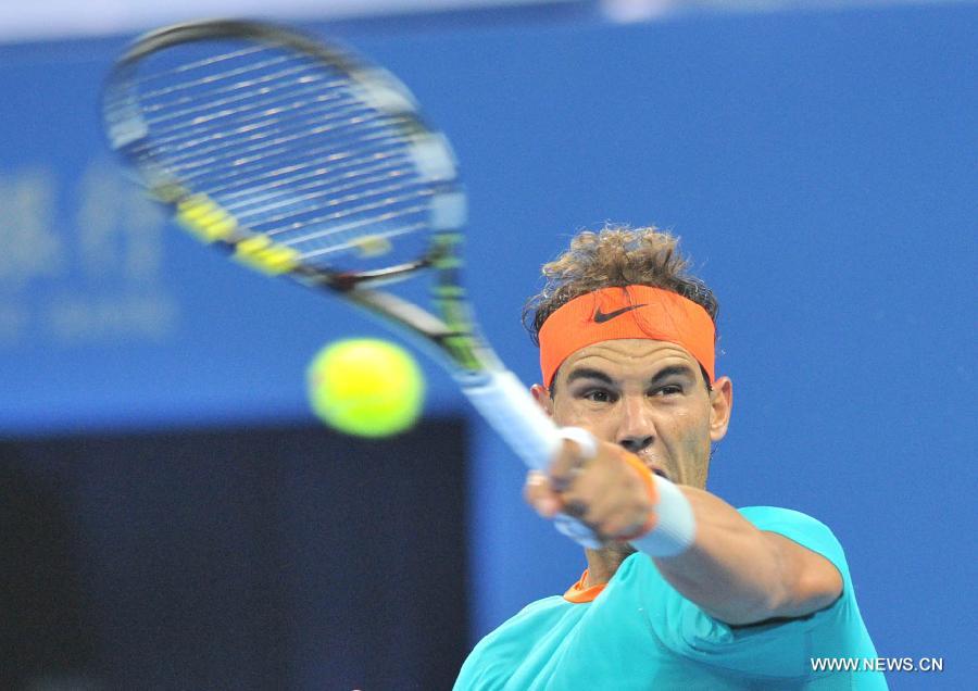 Rafael Nadal of Spain returns the ball during the men's singles quarterfinal match against Martin Klizan of Slovakia at the China Open tennis tournament in Beijing, China, Oct. 3, 2014. Nadal lost 1-2. (Xinhua/Li Wen)