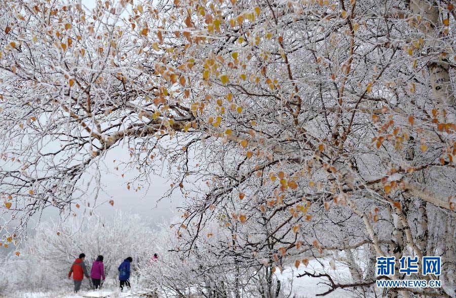 Photo taken on Oct. 5, 2014 shows the beautiful rime scenery at Hexigten Global Geopark of China, N China's Inner Mongolia. (Xinhua photo)