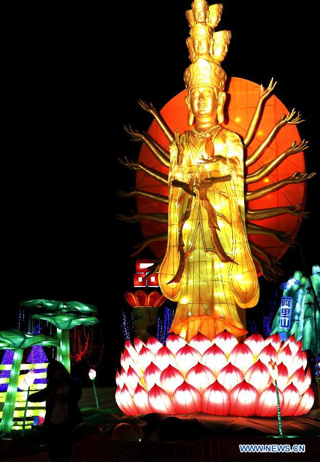 Photo taken on Oct. 6, 2014 shows a lantern of Guanyin, also known as "Goddess of Mercy", during a lantern show in Beijing, capital of China. The lantern show demonstrated folk customs and culture of southeast China's Taiwan. (Xinhua/Pan Xu)