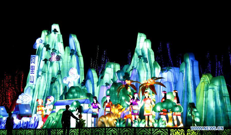 Photo taken on Oct. 6, 2014 shows lanterns displayed during a lantern show in Beijing, capital of China. The lantern show demonstrated folk customs and culture of southeast China's Taiwan. (Xinhua/Pan Xu)