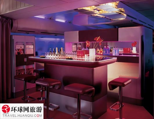 Bar stool, red wine, yes! This is a place on a plane. Virgin Atlantic Airways wants to give their passengers more ways of leisure besides just sitting in their seats.
