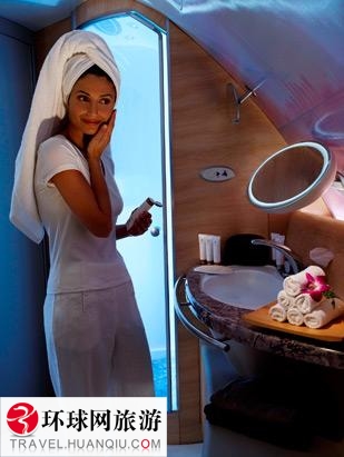 Have you ever taken a shower 43,000 feet in the air? There are two shower rooms in the Emirates Airlines A380 for first class passengers to use.
