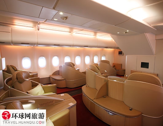 These are the seats in the first class suites of Air France. It is very convenient for each passenger to get to the aisle without disturbing others. More importantly, each of the seats can be converted into beds with cushions and duvets. Under each seat, there is room for luggage. There is even another bench in front of each seat, so that people can invite others over. Other equipment includes a 10.4 inches television, automatic message seat, and a noise-free speaker.