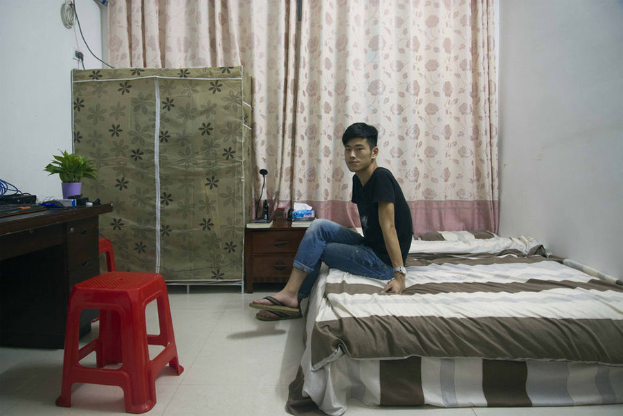 The red stool is Hang's homework of Industrial Modeling Design class. (Photo/cankaoxiaoxi.com)