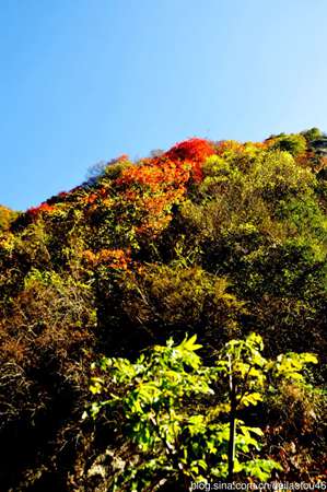 Two microblog users, one named "Hei Lao Tou" (or Black Old Man) on Sina.com and another "Zhou Qin Gu Li" (or Native Land of the Zhou and Qin Dynasties) on Fengniao.com, scaled Cuihua Mountain in late autumn to capture the beauty of autumn at Cuihua Mountain by camera, and so have brought enjoyment to all. The difference between the two's works is that one of them focused mainly on the colorful mountainous scenery while the other one favored the clear springs more than anything else.