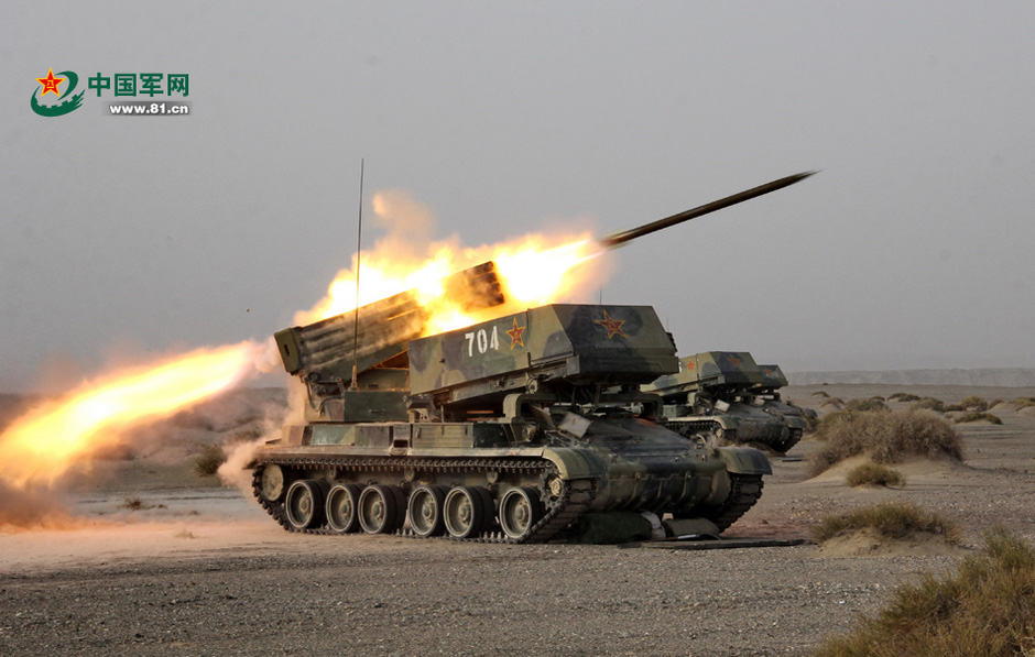 An artillery regiment of Xinjiang Military Region conducts a live-fire tactical drill in the desert on Sept. 26, 2014. (www.81.cn/Wang Xuezhen and Cheng Qizhang)
