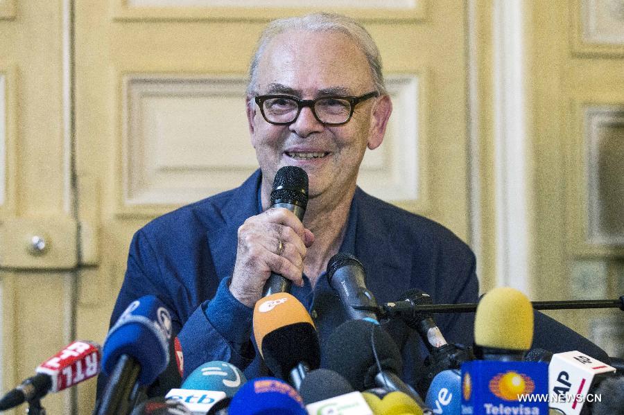 French author Patrick Modiano attends a press conference in Paris, France, on Oct. 9, 2014. Patrick Modiano won the 2014 Nobel Prize in Literature on Thursday.(Xinhua/Jose Rodriguez)