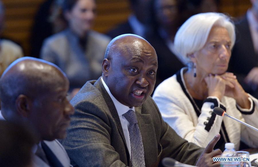 Donald Kaberuka, President of African Development Bank, speaks at a meeting discussing the Ebola impact, possible solutions and how to support countries affected by the Ebola crisis, at the World Bank in Washington D.C., the United States, Oct. 9, 2014. (Xinhua/Yin Bogu) |