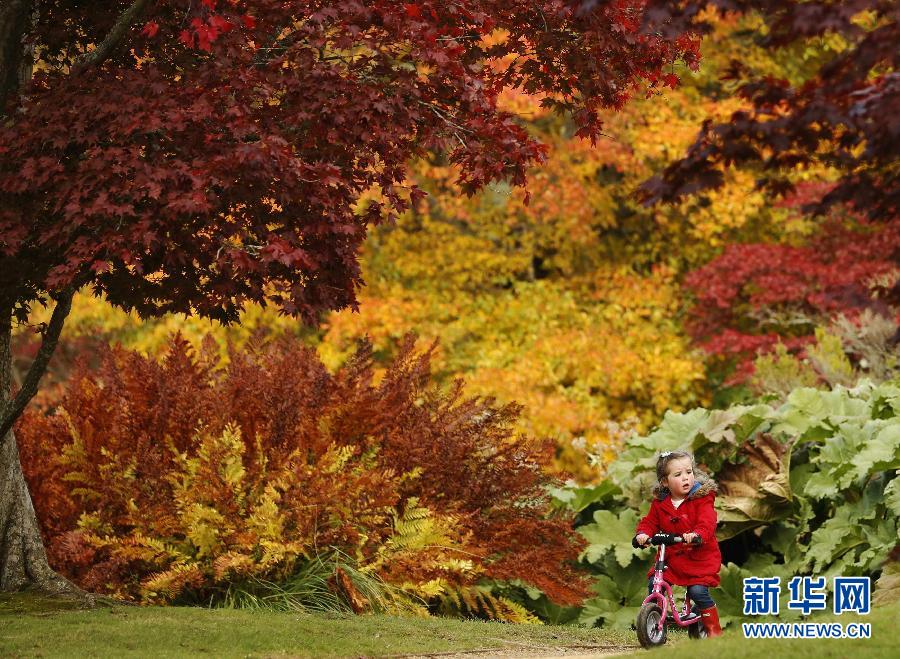 A 3-year-old girl rides bike at south England's Sheffield Park. (Xinhua/Reuters)