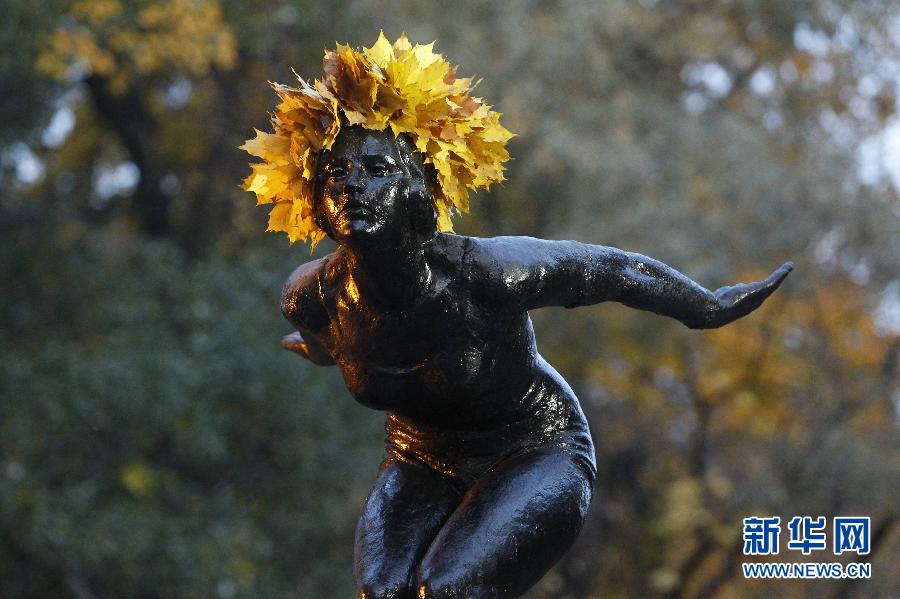 Maples decorate a sculpture in Moscow, Russia. (Xinhua/Reuters)