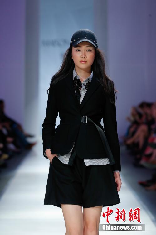 Led by a fashion brand promotion organization, independent designers from China's Shenzhen attract local residents with their fashionable clothes at a fashion show held in Portland, the largest city in the U.S. state of Oregon on the night of Oct. 8, 2014. (CNS/Li Tao)
