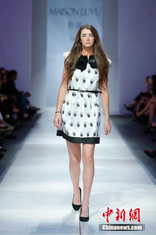 Led by a fashion brand promotion organization, independent designers from China's Shenzhen attract local residents with their fashionable clothes at a fashion show held in Portland, the largest city in the U.S. state of Oregon on the night of Oct. 8, 2014. (CNS/Li Tao)