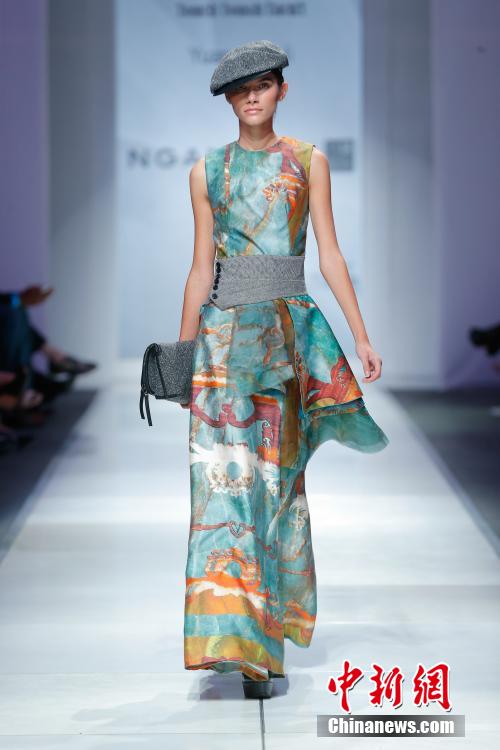 Led by a fashion brand promotion organization, independent designers from China's Shenzhen attract local residents with their fashionable clothes at a fashion show held in Portland, the largest city in the U.S. state of Oregon on the night of Oct. 8, 2014. (CNS/Li Tao)