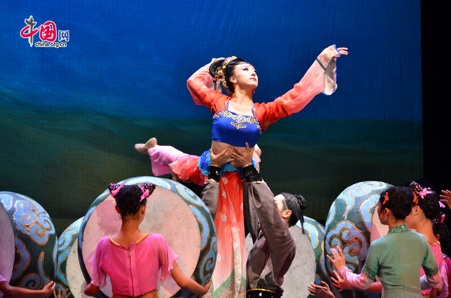 Artists perform the dance drama "Silk Road" in Lanzhou on Thursday, Oct. 9, 2014, as part of the activities marking the 3rd International Culture Industry Conference, which is being held in the city. [Photo by Su Yadong / China.org.cn]