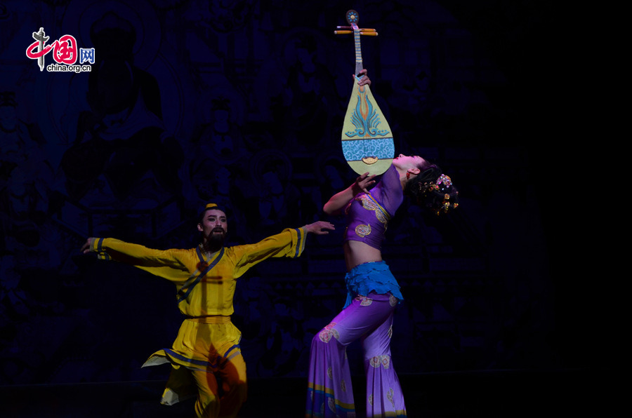 Artists perform the dance drama "Silk Road" in Lanzhou on Thursday, Oct. 9, 2014, as part of the activities marking the 3rd International Culture Industry Conference, which is being held in the city. [Photo by Su Yadong / China.org.cn]