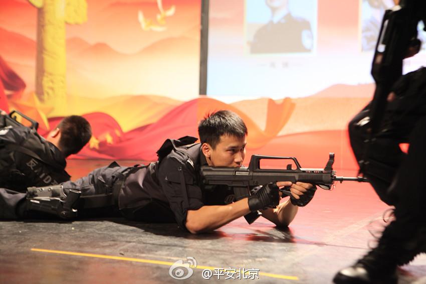 Cao Zhigang, a candidate for the fifth "My favorite people's police officer" came to Beijing Film Academy on Oct. 9, 2014. Cao and his colleagues told college students their own crime-fighting stories, and performed a cool posing gun show.