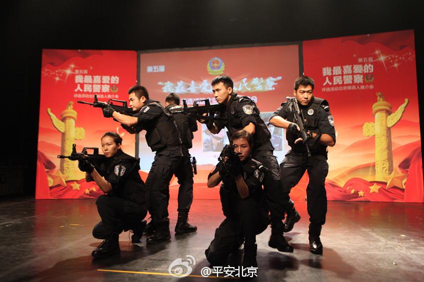 Cao Zhigang, a candidate for the fifth "My favorite people's police officer" came to Beijing Film Academy on Oct. 9, 2014. Cao and his colleagues told college students their own crime-fighting stories, and performed a cool posing gun show.