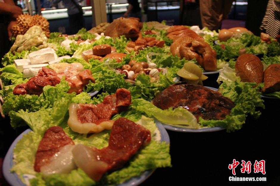 A Chinese feast made from stone debuts in Xi’an, northwest China’s Shaanxi province on Oct. 10, 2014. The delicacies are so vivid that they would make one’s mouth water. The whole feast sells at 360,000 yuan. (Chinanews/Zhang Yicheng)