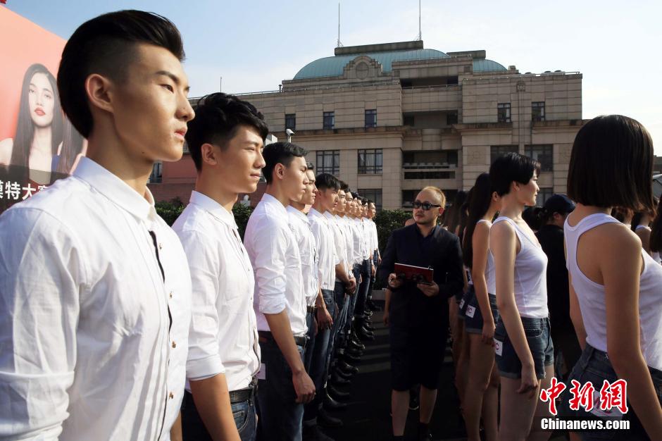 On October 10, 2014, 42 finalists of the Shanghai International Model Contest make their debut at Shanghai Designer Salon. Some of them are selected by designers to attend the 2015 Spring/Summer Shanghai Fashion Week. The final will be held on October 24, 2014. (Chinanews/Pan Suofei)